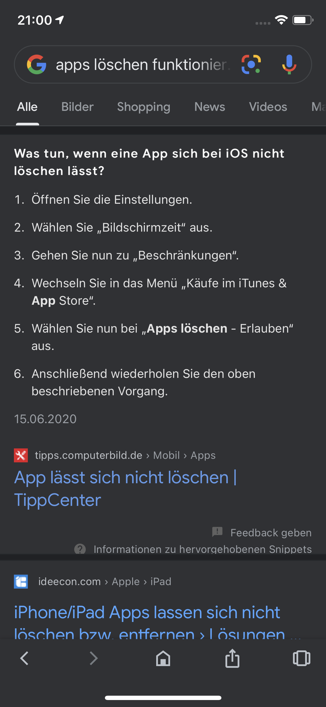 Hallo, ich habe versucht gesetzte Lesezeichen auf dem homescreen zu löschen, es geht nicht
