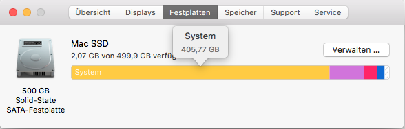 Bei meinem MacBook Pro von 2012, Betriebssystem High Sierra, wird nach dem Löschen der Speicherplatz nicht freigegeben. Ich habe einen Ordner von 58 GB gelöscht, eine Time Machine Sicherung durchgeführt und neu gestartet. Statt 58 GB Fotos wird mir jetzt angezeigt, dass mein System insgesamt 402 GB belegt (inklusive der 58 GB, die vorher mit Fotos belegt waren). Ich kann keine Updates mehr laden, da nicht genügend Speicherplatz vorhanden ist.
