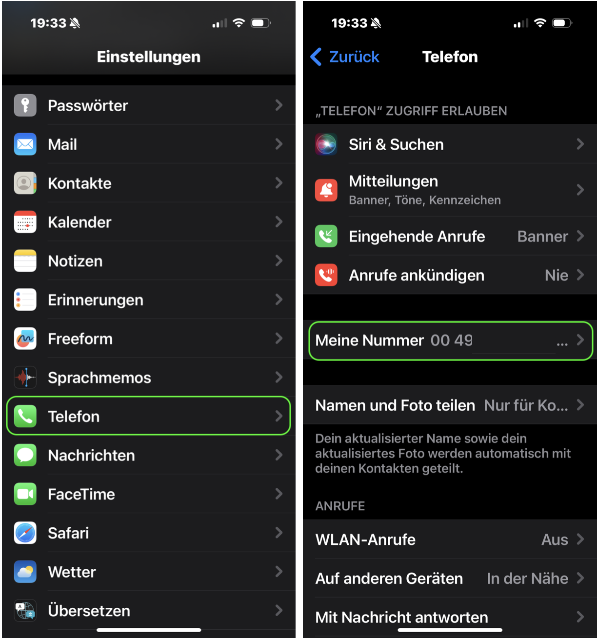 habe ich im Bild rechts meine Telefonnummer unter "Meine Nummer" eintragen müssen. Danach konnte ich auch wieder angerufen werden.