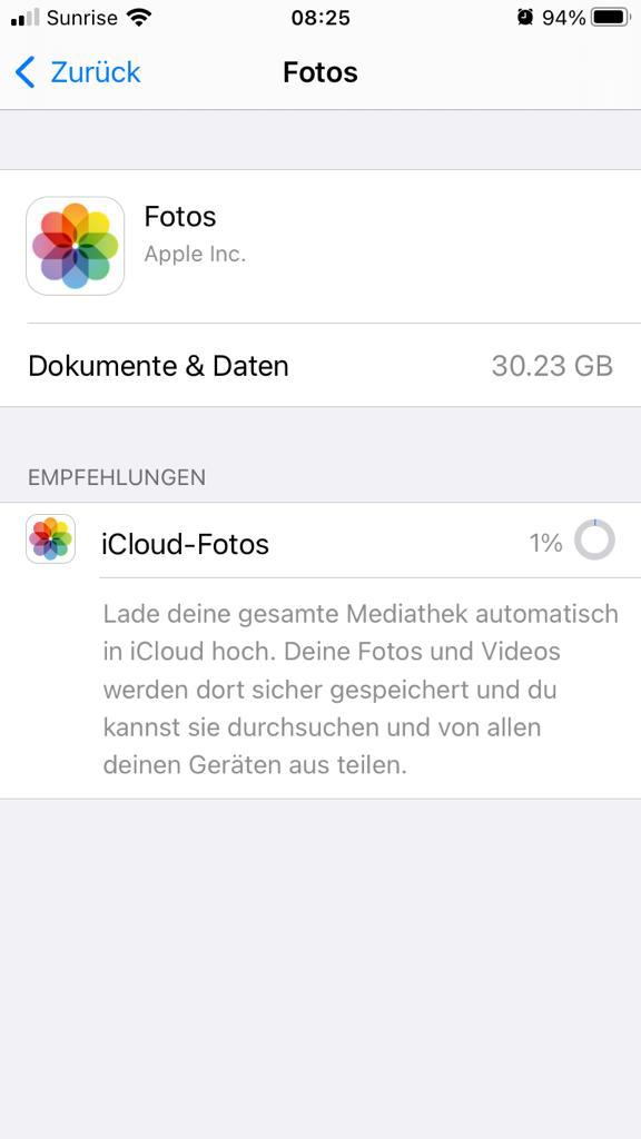 Ich bereits folgendes Gemacht: iPhone neu gestartet, Schieber "iCloud-Fotos" in den Einstellungen der Foto App aus- und eingeschaltet, iCloud ab- und wieder angemeldet.