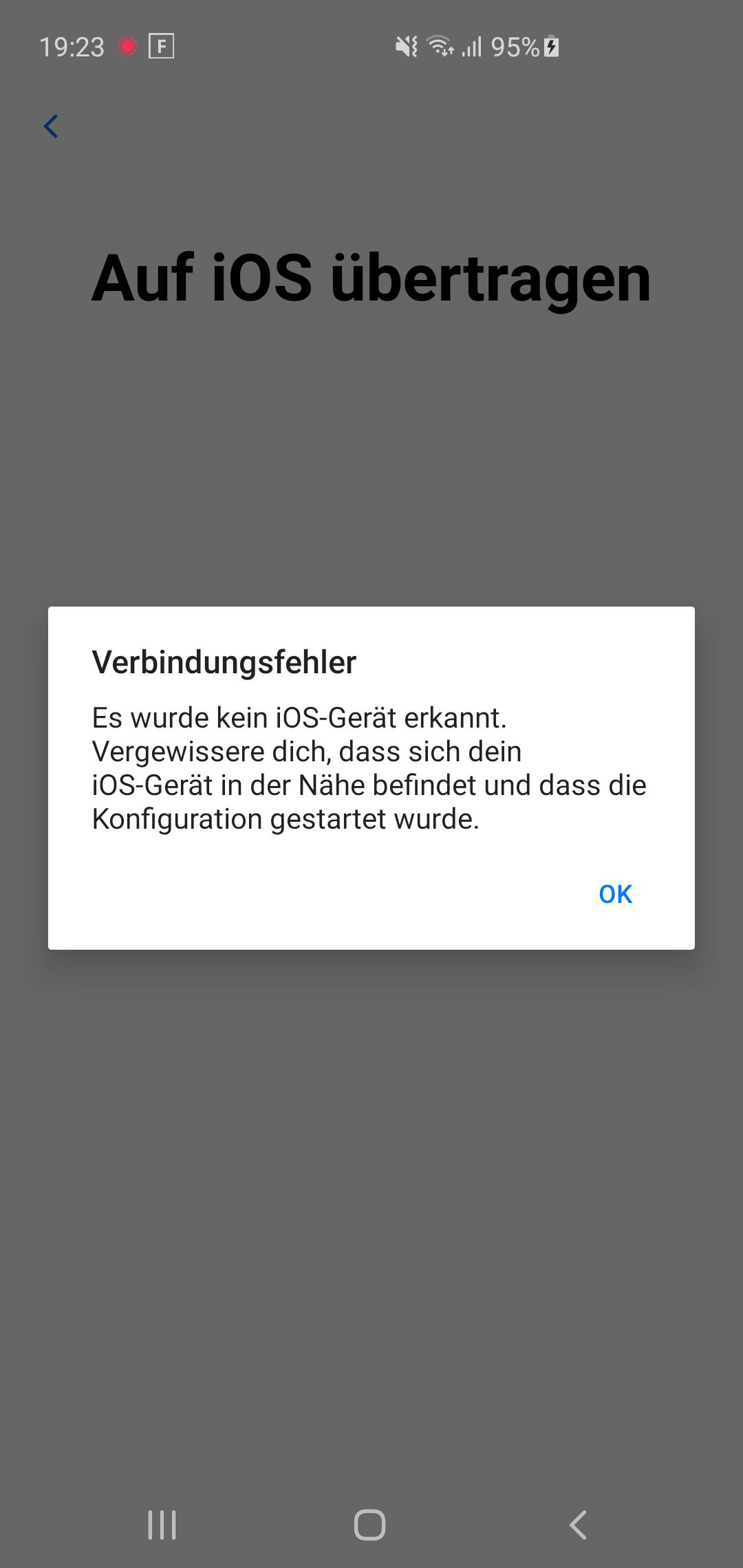 Ich versuche über die App Android zu IOS meine Daten zu übertragen. Leider bricht die Verbindung vor der Auswahl der Dateien ab. Bei beiden Smartphones erscheint "Verbindungsfehler" Es wurde kein IPHONE gefunden. Kann es damit zusammenhängen, dass das IPHONE eine andere Uhrzeit anzeigt als es wirklich ist. Kann man diese bei der Einrichtung verstellen?