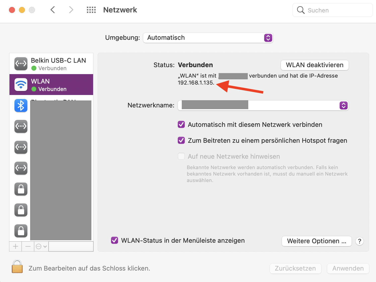 seit ein paar Wochen bricht die WLAN Verbindung bei meinem MacBook Pro (2016) ständig ab. Laut Anzeige ist der PC zwar noch mit dem WLAN verbunden (also volles Empfangssymbol) aber Inhalte aus dem Internet wie Websites oder auch Musik werden nicht mehr geladen. Ein- und Ausschalten des WLANs hilft kurzfristig, dann bricht es wieder ab.