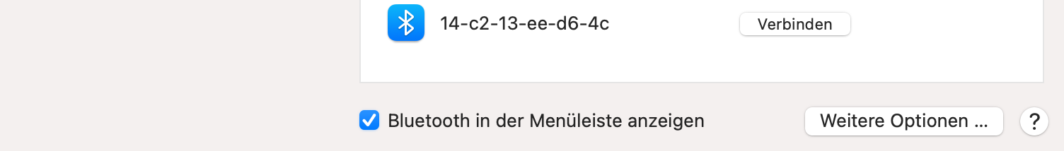 In den Bluetooth Einstellungen wird nun nur noch eine komische MAC-Adresse angezeigt (siehe Bild) mit der ich mit nicht verbinden kann.