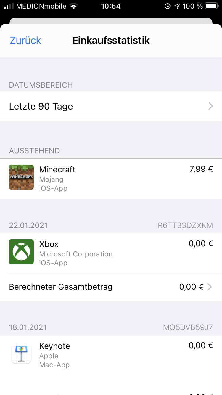 Gestern Abend habe zu meinen 4€ App Store Guthaben noch eine 15€ Karte hinzugefügt. Damit habe ich mir dann Minecraft gekauft. Es wurde mir auch der Betrag abgezogen. Bei Verwendung der App kam es zu kleinen Bugs, sodass ich sie nochmal gelöscht habe. Als ich sie dann wieder herunterladen wollte, wurde sie mir nur auf meinem IPhone als gekauft angezeigt, auf meinem IPad nicht. Als ich dann in der Einkaufsstatistik nachgeguckt habe, ob die App gekauft ist, fand ich das vor