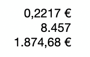 Zelle B7 (0,2217 € * Zelle B( (8.457) = 1.874,68 €