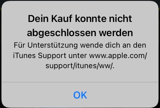Kauf konnte nicht abgeschlossen werden, trotz ausreichend iTunes Guthaben