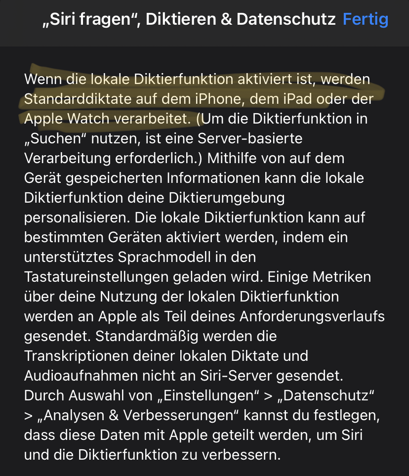 Lokale Diktierfunktion am iPhone