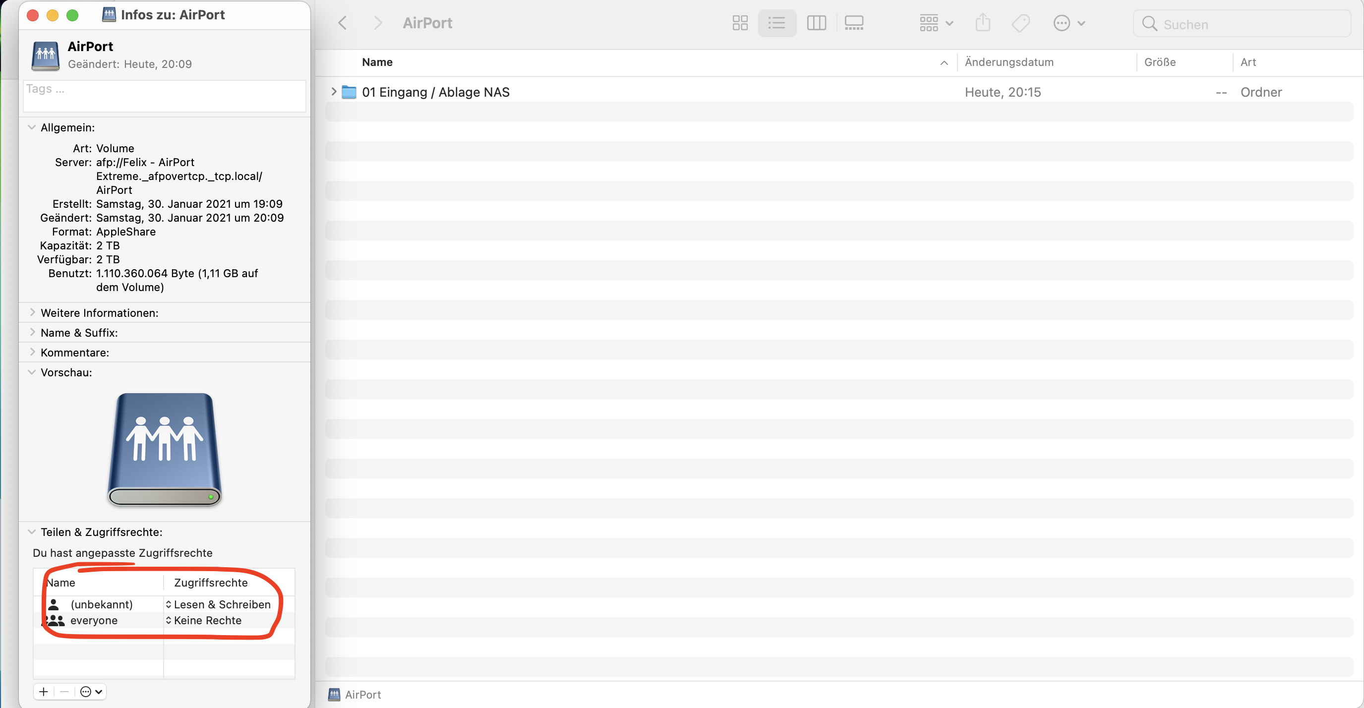 Die andere Partition heißt AirPort und soll als Netzwerk-Speicher dienen (also als NAS). Das funktioniert ebenfalls - aber nur auf dem Mac.
