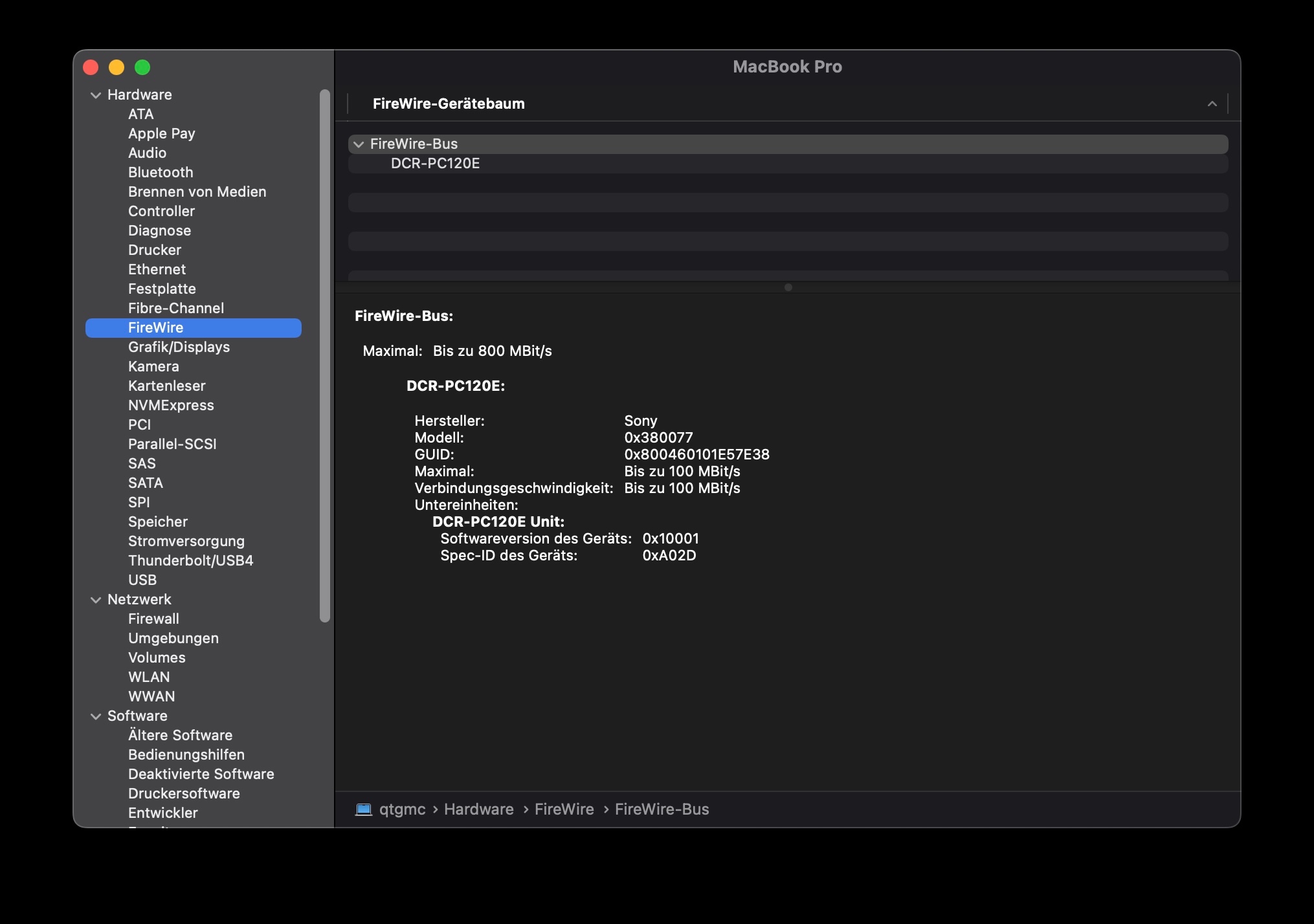 Mini DV camcorder wird nicht erkannt (MacBook Pro 2020)
