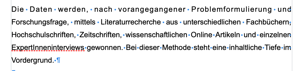im Zuge meiner Masterarbeit ärgere ich mich nun seit Tagen, dass ich den sog. Zeichenabstand in so manchen Zeilen nicht wegbekomme.