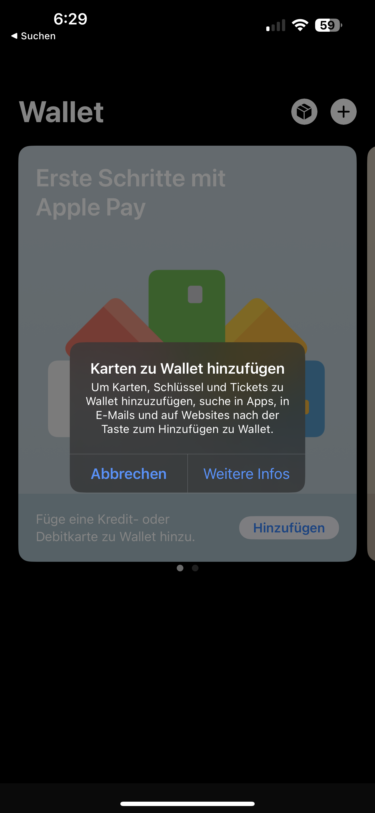 Fehlermeldung beim Hinzufügen einer Karte zum Apple Wallet