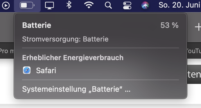 Ich habe mir letzten Samstag den neuen M1 Macbook zugelegt. An sich bin ich sehr zufrieden allerdings, habe ich das Gefühl das etwas mit meinem Akku nicht stimmt. Die versprochene Akkulaufzeit von Apple würde mein MacBook niemals erreichen können. Wenn ich mir ein 20 -25 min YouTube video anschaue, so verliere ganze 3% an Akku ein Film auf 720p verbraucht bei 75% Helligkeit ganze 9% nach 45 min!!! und auch so habe ich das Gefühl das ich beim simplen durchstöbern der Einstellung meinen Akku extrem verbrauche. Ich benutze Safari und habe bisher keine einzige App oder sonst was heruntergeladen. Ich bin vom Akku enttäuscht, vor allem was ich sonst so von anderen höre.
