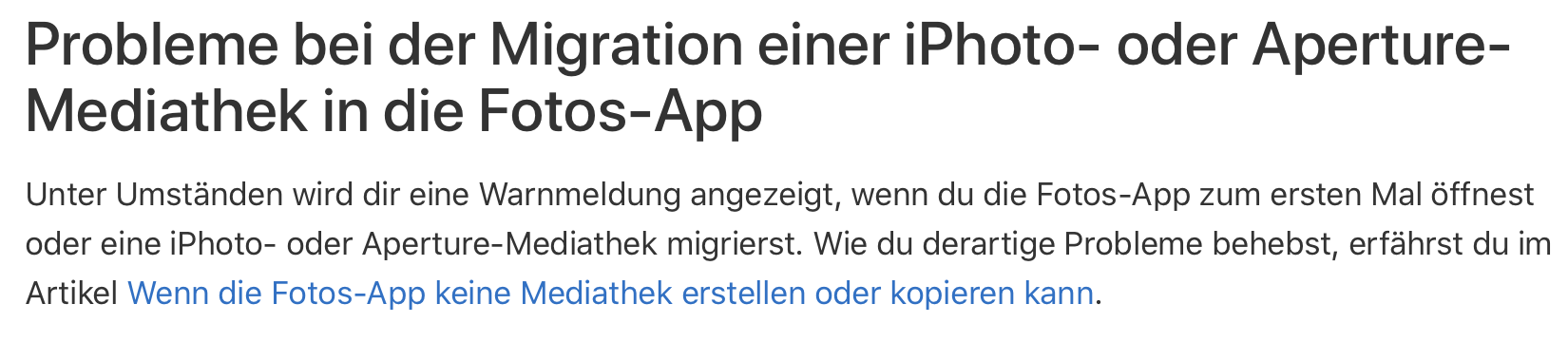 Ich habe meine alten Fotos in iPhoto gespeichert. Auch nach dem update der App sagt mir mein neues MacBook Air dass es nicht auf die Dateien zugreifen kann. Wie komme ich an meine alten Fotos?