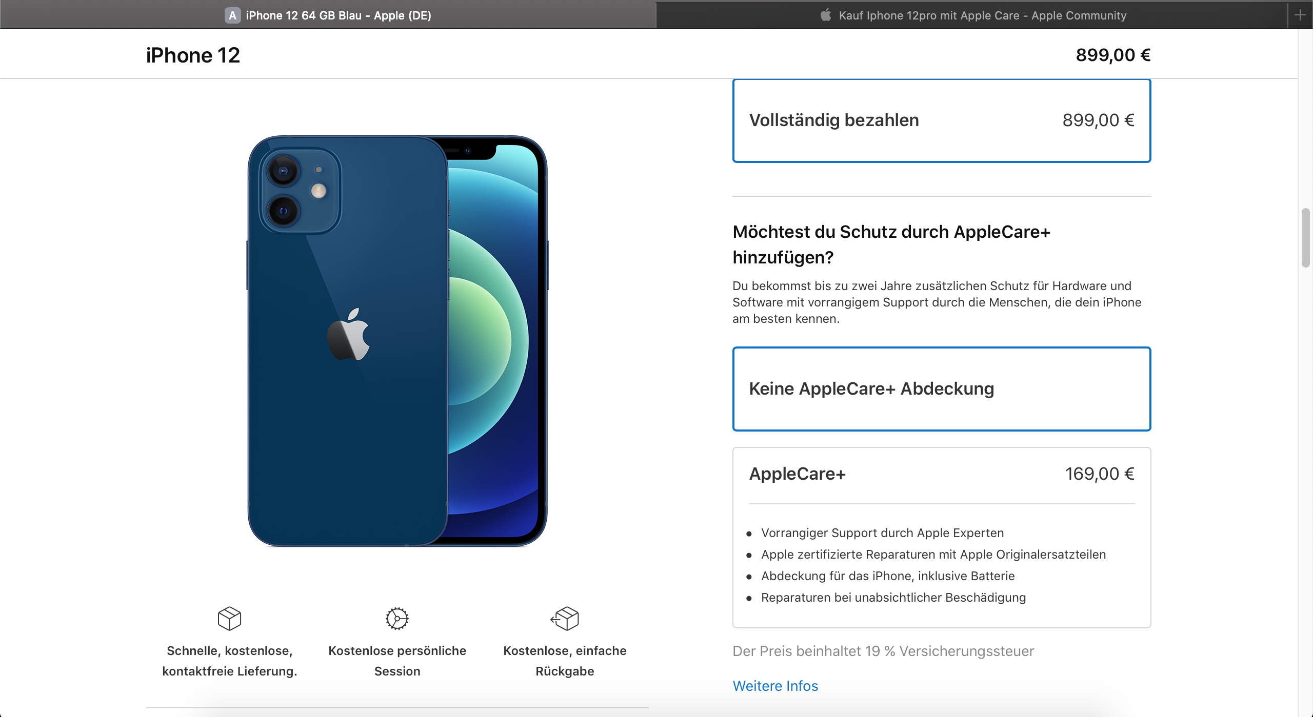 Hallo, ich spiele mit dem Gedanken von Android auf Apple zu wechseln, nun habe ich im Store hier gesehen das ich beim Kauf des Iphone 12pro kein Apple Care dazukaufen kann. Oder mache ich da was falsch?