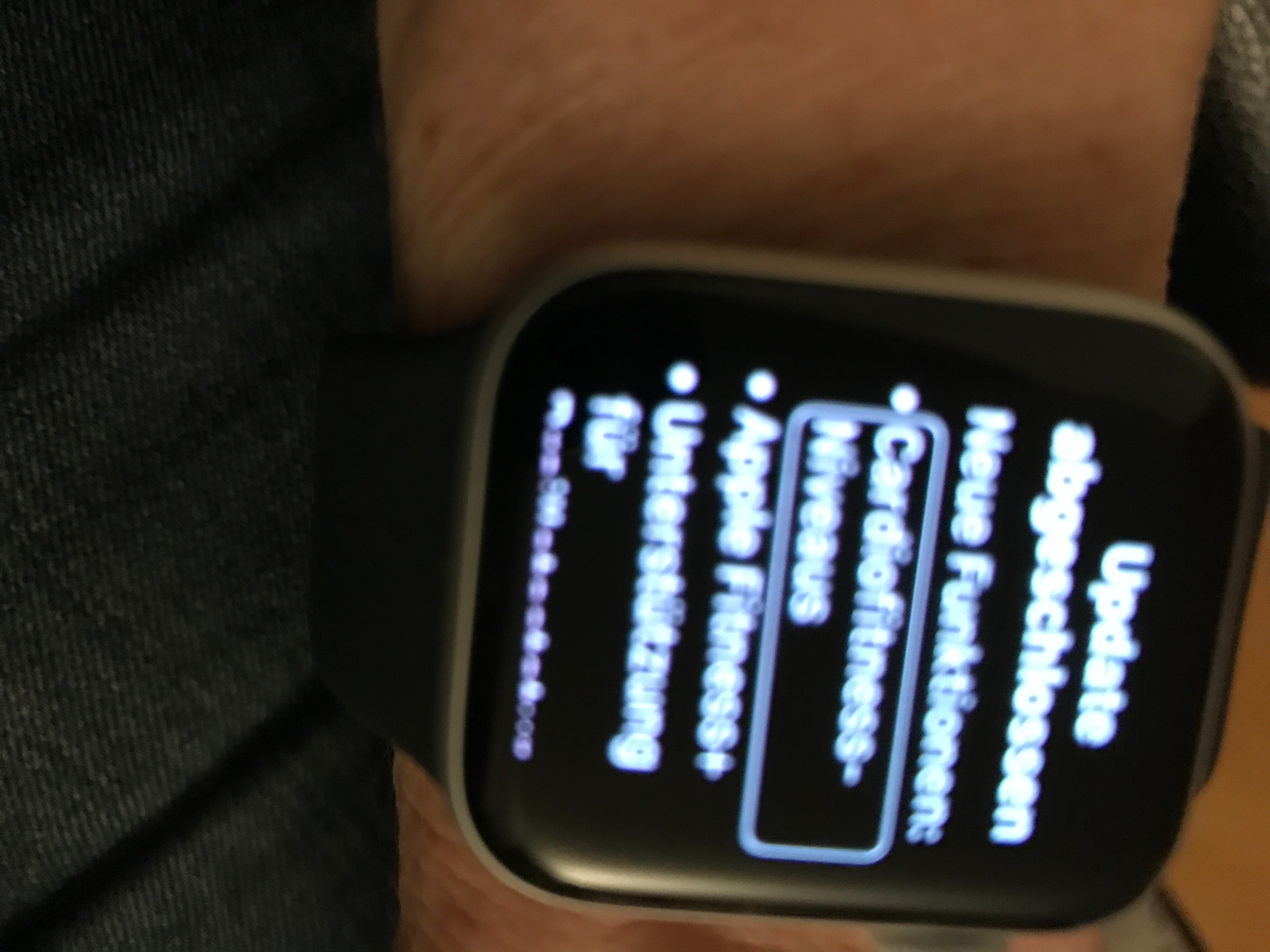 Wenn ich auf meine watch tippe bekomme ich ganz kurz die Uhr angezeigt und die Anzeige „Update abgeschlossen - Neue Funktionen: Cardiofitness etc. „ Aus dieser Anzeige komme ich nicht wieder raus. Was mache ich falsch?