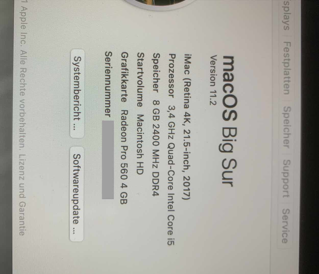 Habe auch das Problem mit Big Sur. Das Update lässt sich nicht laden. Auch Big Sur neu aufzuspielen funktioniert nicht. es ist zum k..., Was tun?