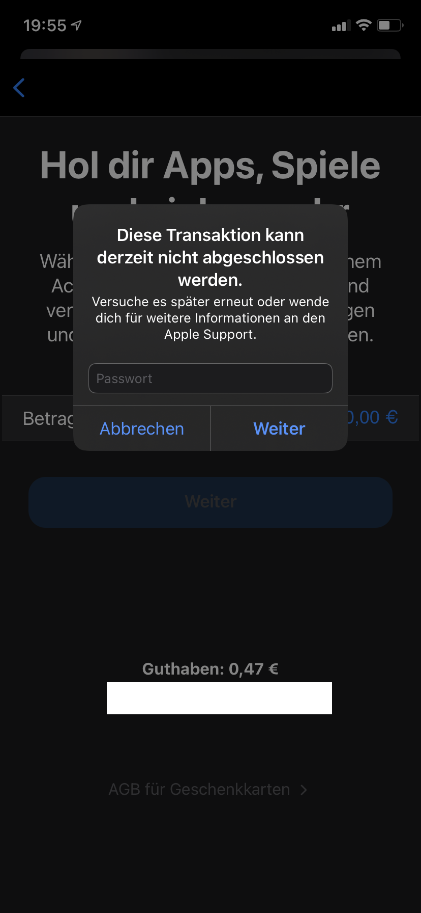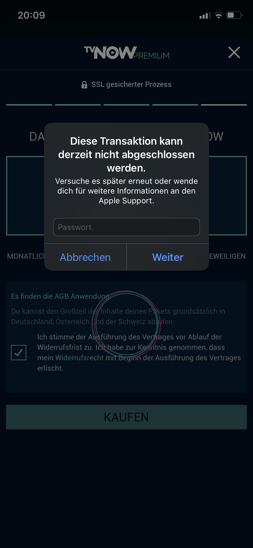 es scheitert in der App, oder Website? Es scheitert an der Methode der Zahlung, welche?