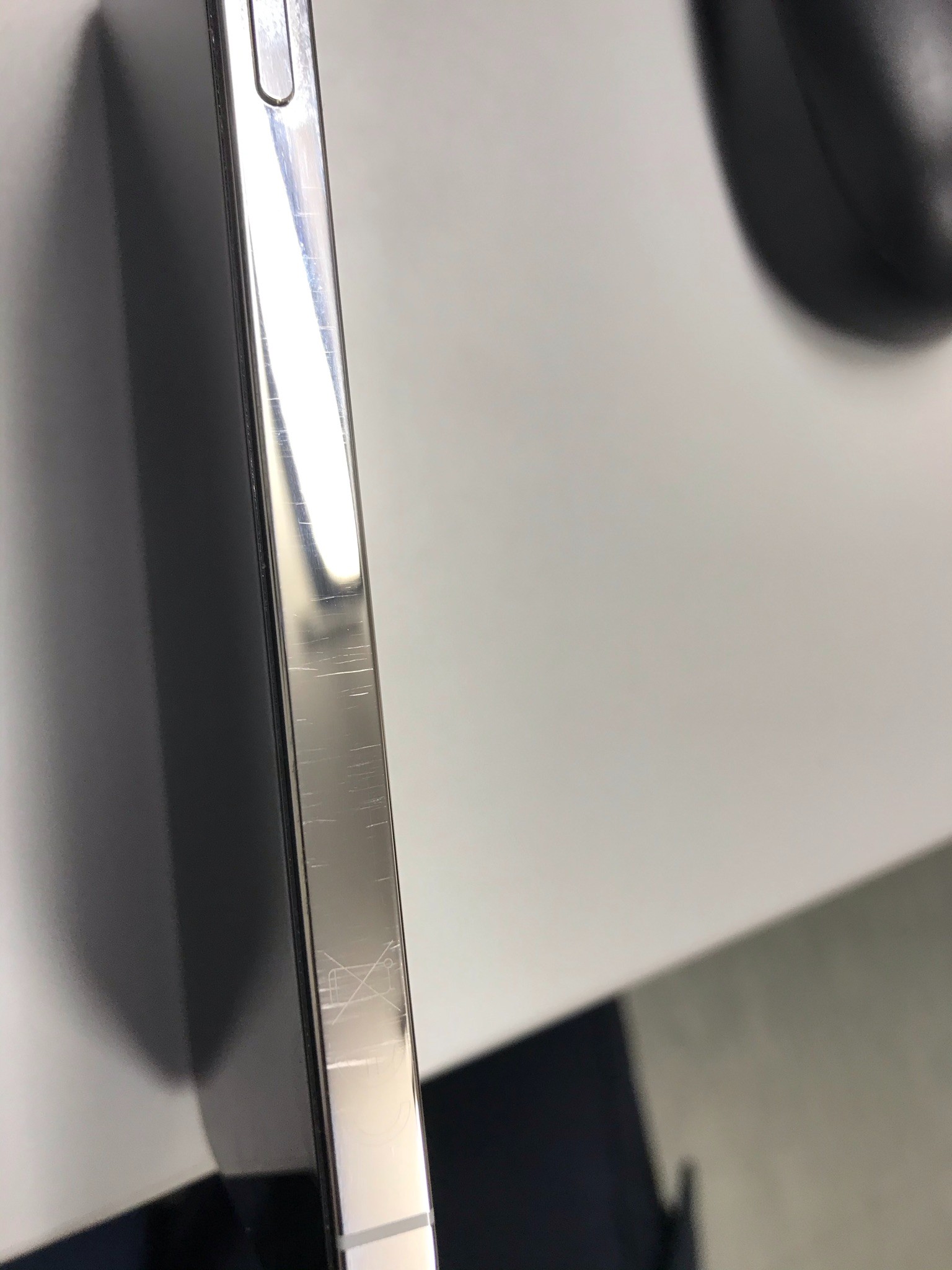 iPhone 12 Pro Max, silber, mehrere Kratzer am Metalrahmen