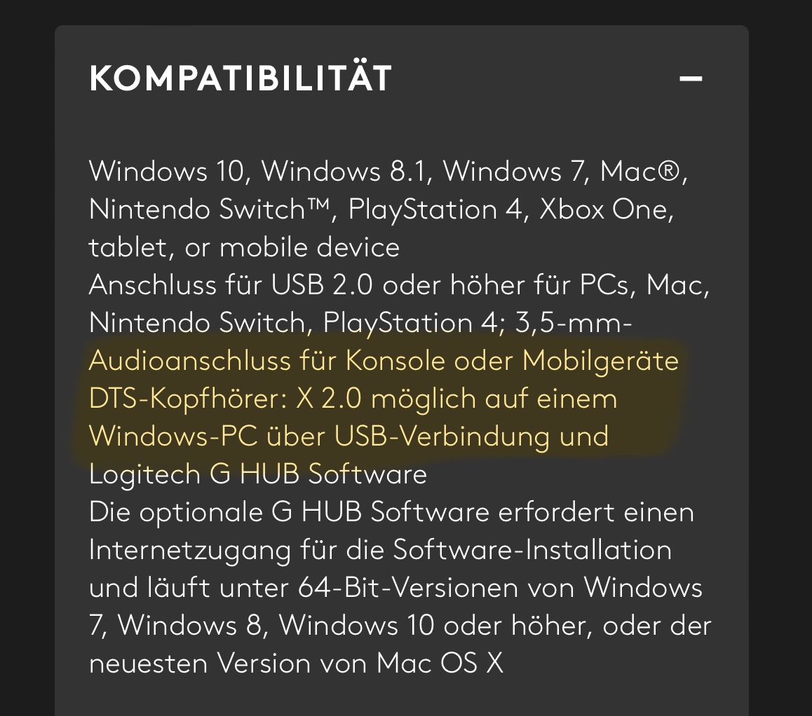 7.1 Surround Sound mit Logitech G432 Headset nicht möglich