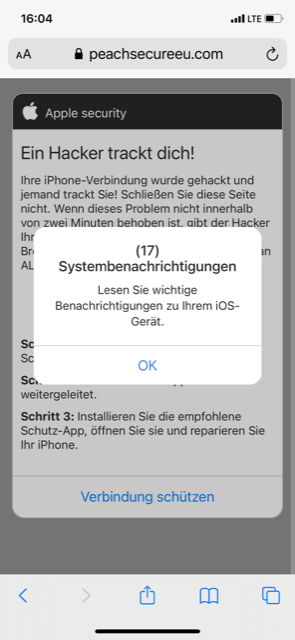 Nachdem ich die Nachricht geschlossen habe, kam folgendes: