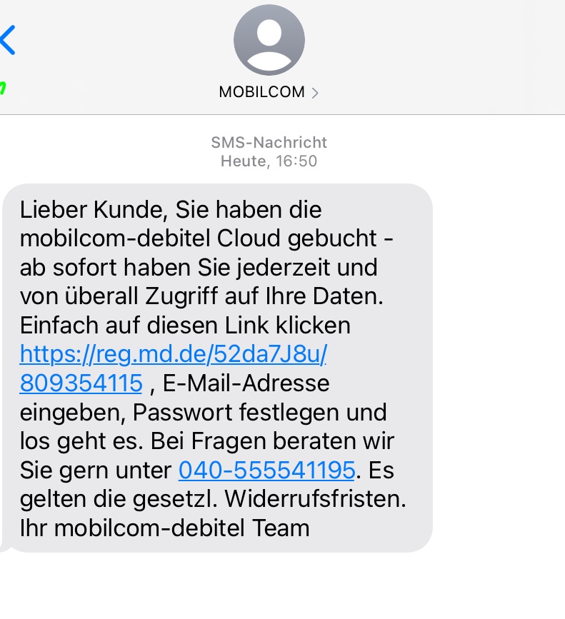 Ich bekommen SMS Von mobilcom-debitel