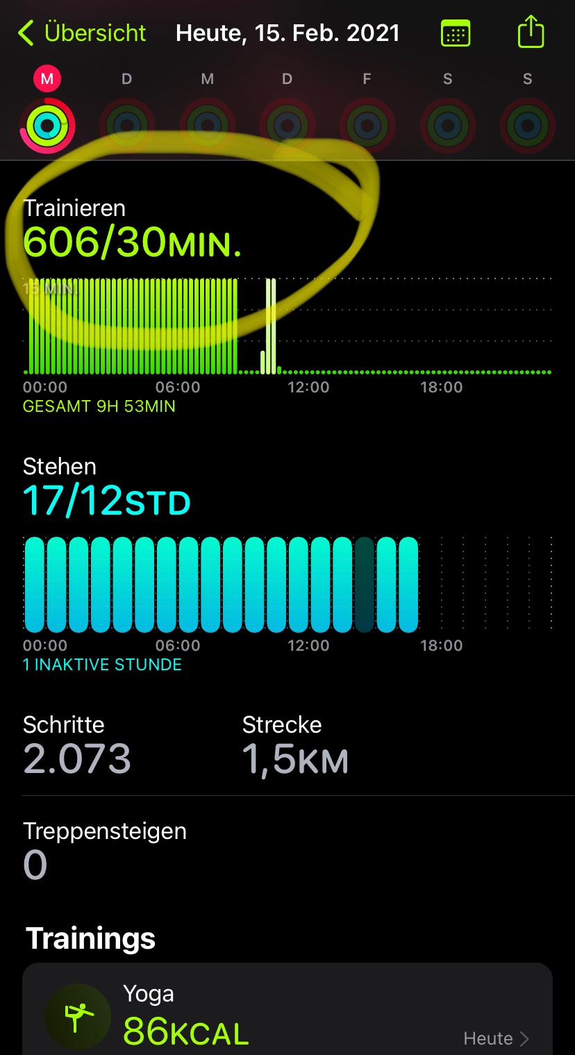Mal schauen wer es von lösen kann… Ich selber kenne mich gut aus und konnte es nicht lösen, ich habe ein manuelles Training hinzugefügt versehentliche Dauer 1 Tag (!) dann schoss es meine Aktivität in der Fitness App gleich nach oben und hab sogar eine Medaille gewonnen. Das war natürlich falsch, ich wollte eigentlich nur 1 Stunde eingeben statt 1 Tag, allerdings lässt sich dieser Wert nicht mehr korrigieren, ich hab den 1 Tag gelöscht und trotzdem ist es noch in der Fitness App vorhanden (anbei Nachweis). ich hab sämtliche Nachweise angeheftet damit ihr sieht dass der Wert faktisch gar nicht mehr da ist -aber die App Fitness ist trotzdem nicht ändert. iPhone und Watch neu gestartet. Tipps? 😃
