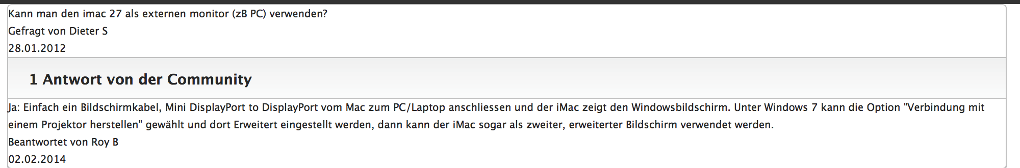 aus: Kann man den imac 27 als externen monitor (zB PC) verwenden?