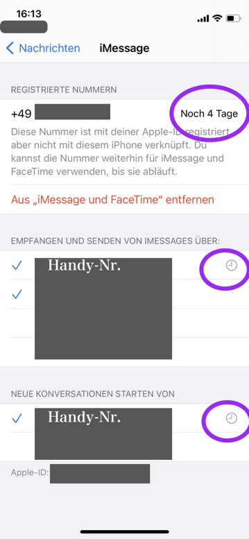 Meldung "Diese Nummer...läuft ab" (iMessage, FaceTime)