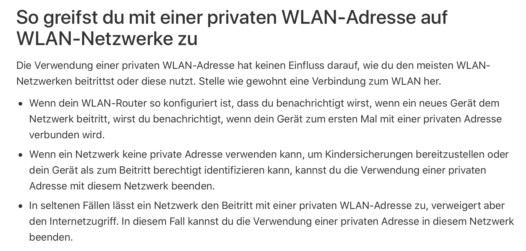 aus: Private WLAN-Adressen in iOS 14, iPadOS 14 und watchOS 7 verwenden
