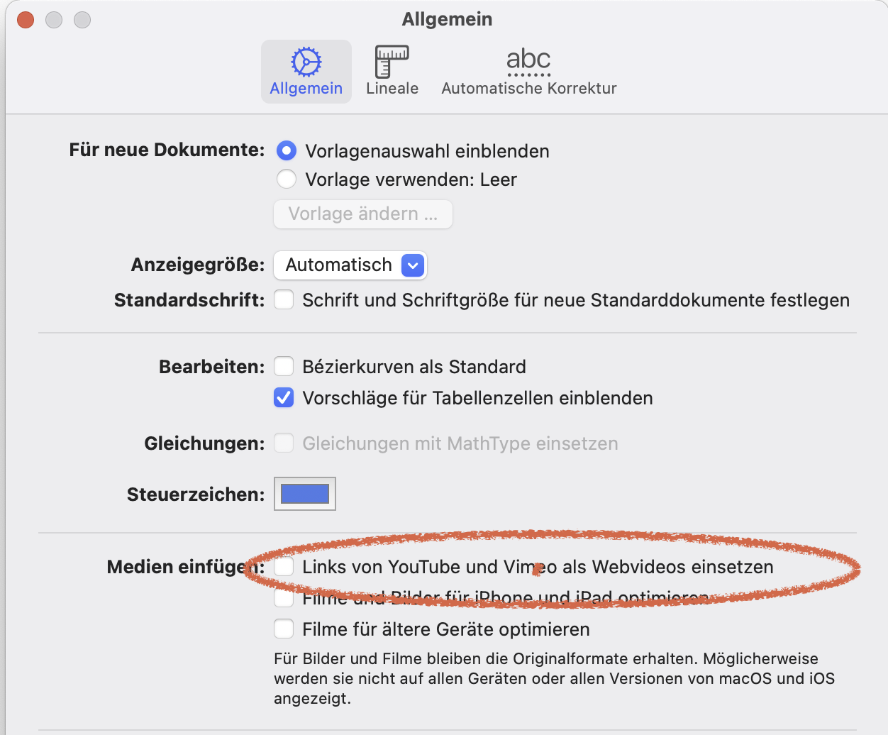 Wenn ich einen Youtube-Link in Pages kopiere, erscheint die URL als Bild. Wie stelle ich das ab, damit es nur als URL erscheint?