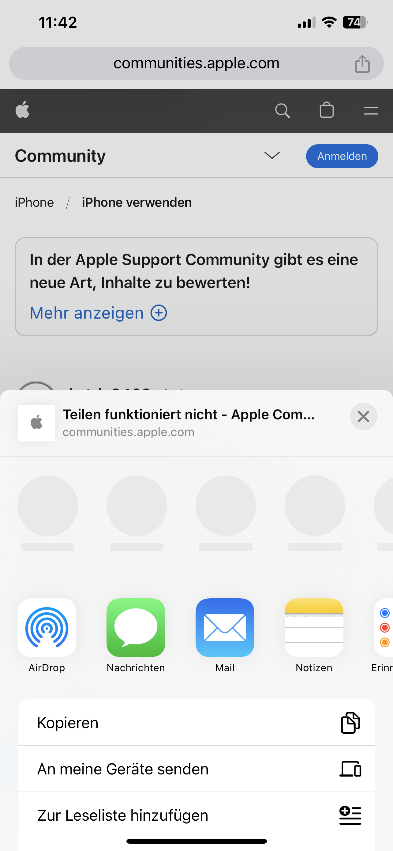 Ich habe ein iPhone XS Max und die teilen Funktion legt das 📱 lahm. Egal ob ich Fotos, Screenshot oder Safari teilen will, der Bildschirm reagiert nicht. Nach dem Neustart funktioniert es 1x und dann ist wieder alles ohne Funktion. Die Funktion habe ich soviel genutzt, das ich am verzweifeln bin. Jemand eine Idee?