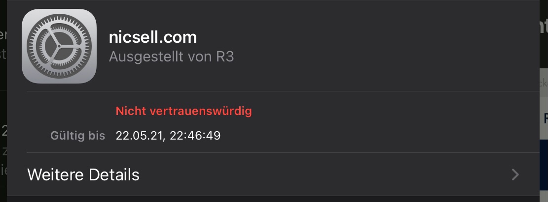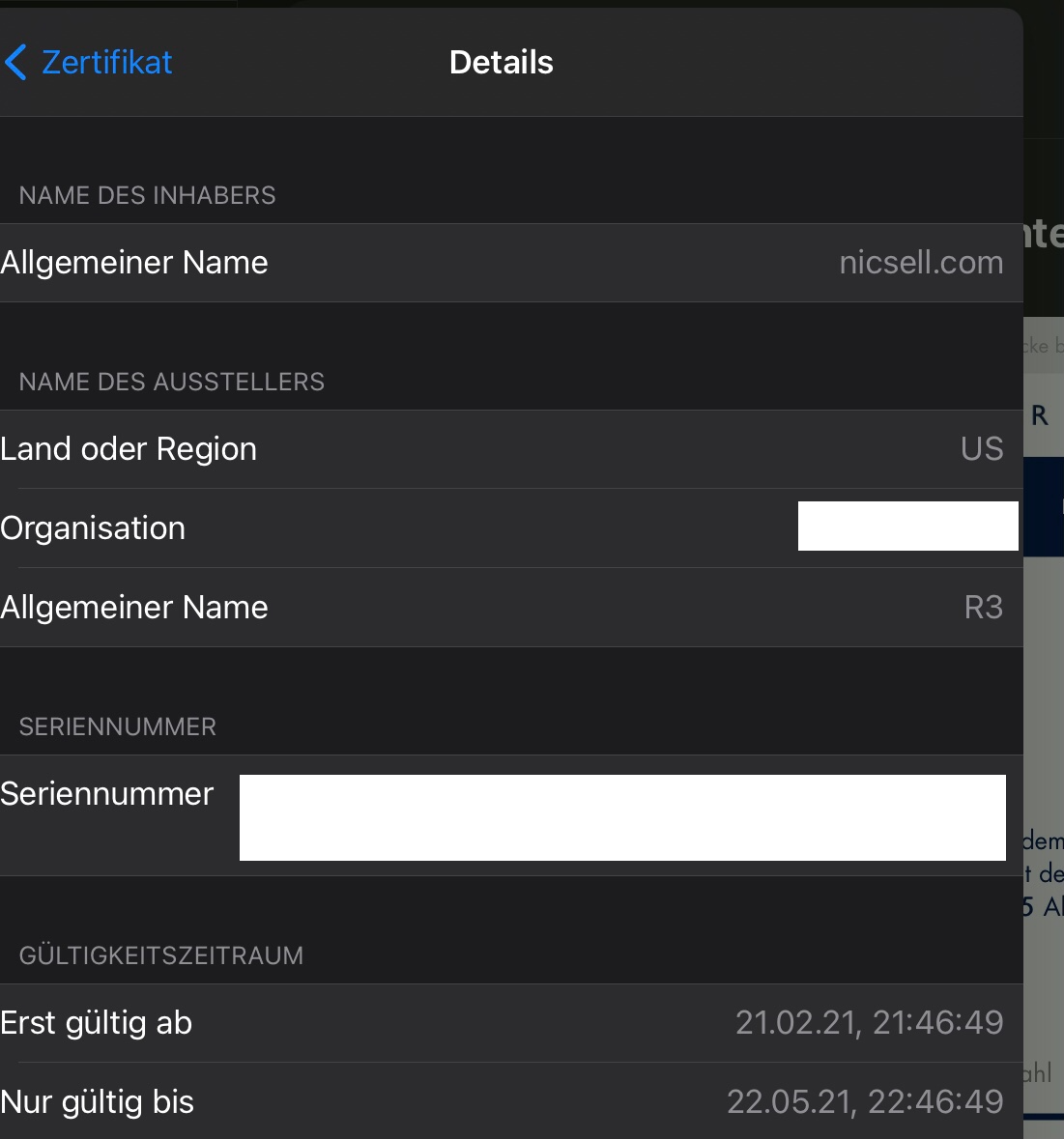 Wie kann ich dieses Zertifikat manuell löschen? Beide Geräte sind auf dem aktuellen IOS Stand.