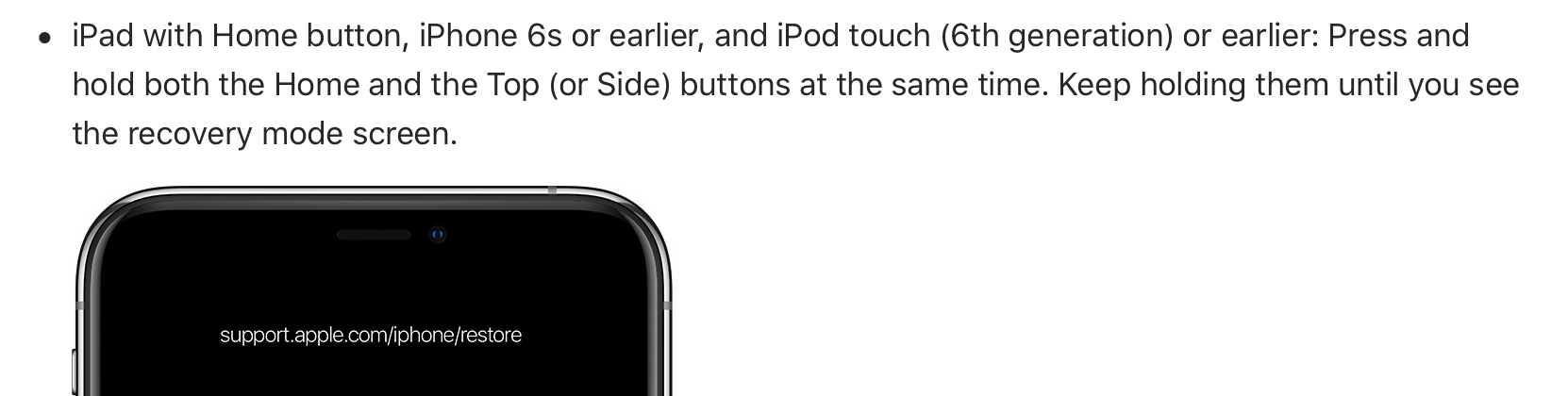 I have the iPhone disconnected from the computer. The phone is locked (my daughter forgot the passcode). I turn it off as described. I connect it and turn it on, holding the key but the phone will go to lock screen.
