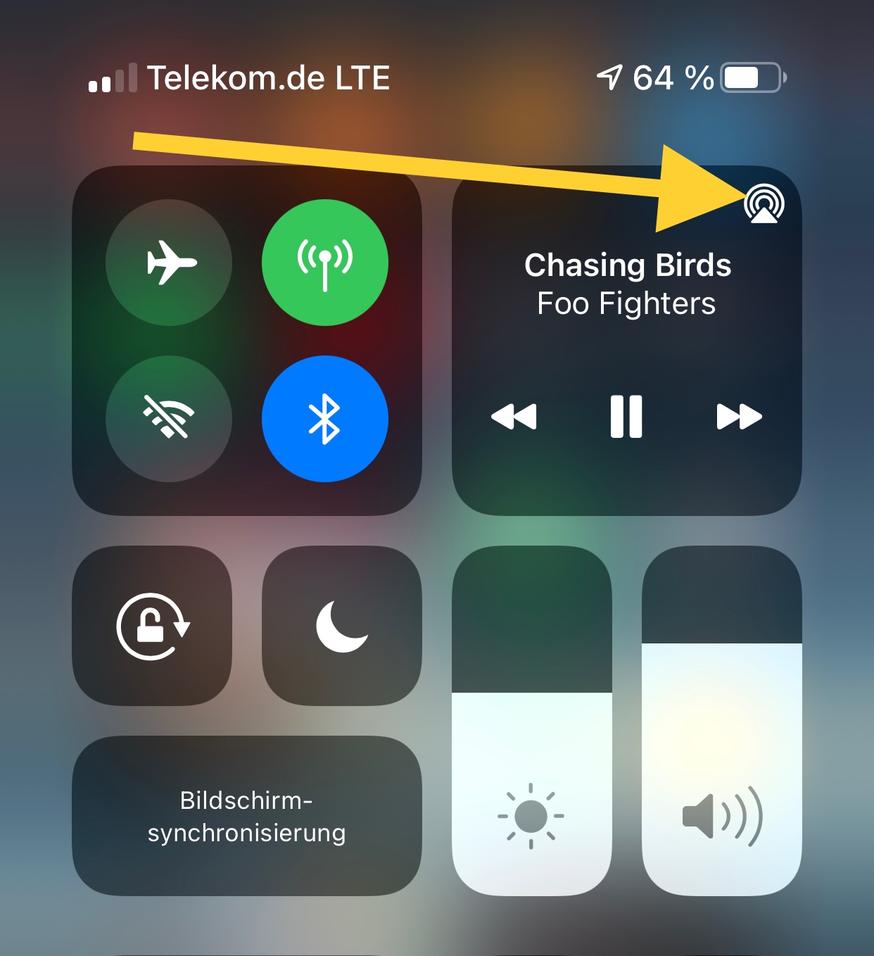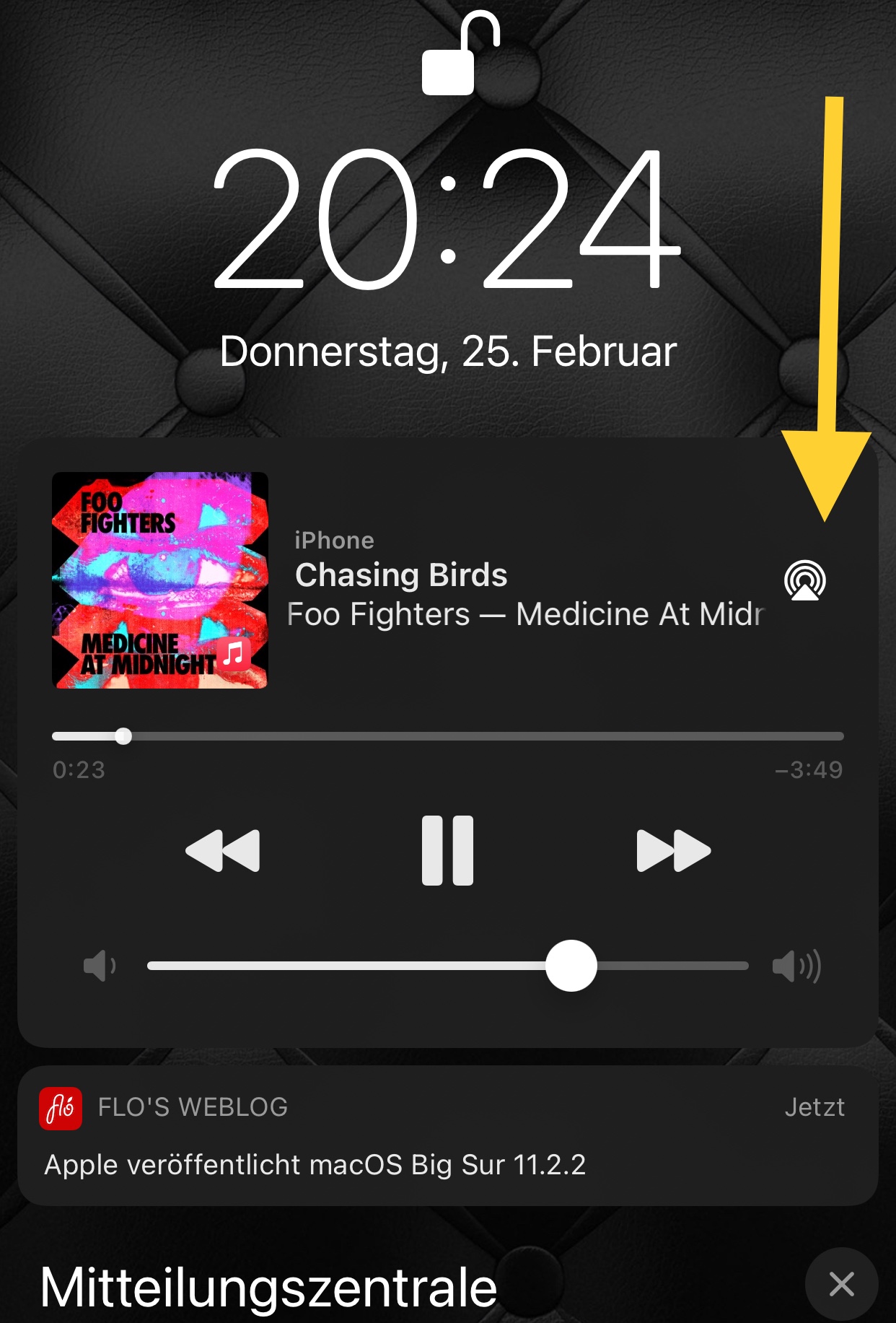 Du kannst einfach das iPhone an die Box halten und damit die Musik an den HomePod übergeben. Oder, wenn die Musik auf dem iPhone läuft, auf dem Button für AirPlay aussuchen, auf welchem Gerät die Musik wiedergeben werden soll. Diesen Button findest Du in der Musikapp, im Kontrollcenter, im Sperrbildschirm etc, also überall wo Du die Musik auch steuern kannst.