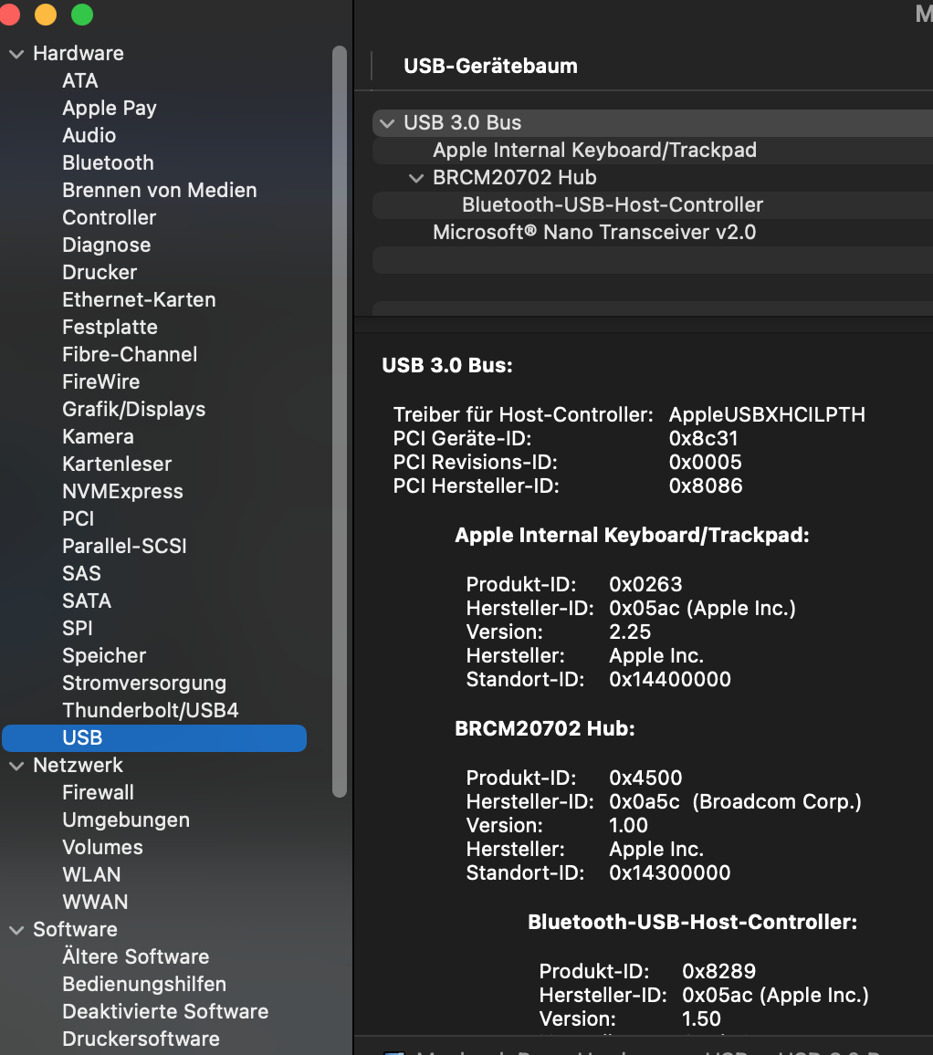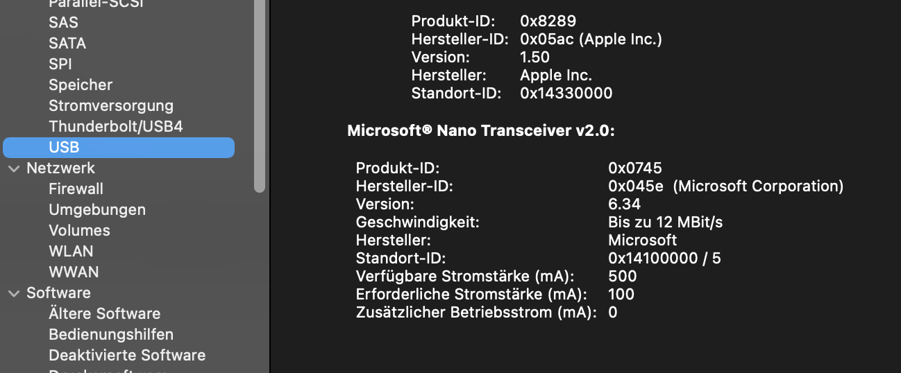 leider sehe ich bei dem Systembericht - Hardware - USB oder auch thunderbold keine Veränderungen. Egal was ich einstecke..... Es sind am Mac Air ja nur noch zwei USB 4 Anschlüsse vorhanden....