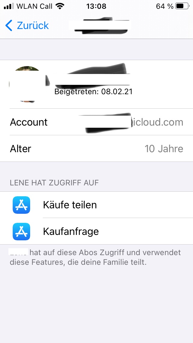 - Tippe auf "[dein Name]" > "Familienfreigabe".