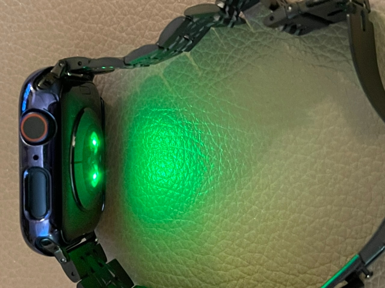 Auf der Unterseite der Apple Watch 6 leuchten immer zwei grüne LED