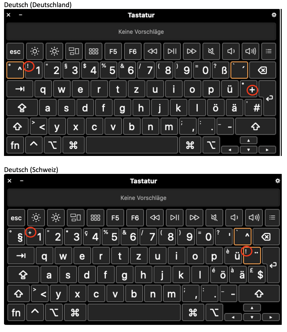 Hast Du in den Systemeinstellungen (wurde ja in einem anderen Beitrag erwähnt) sicher die richtigen Einstellungen? Du kannst ja einmal zu Testzwecken ein weiteres Tastaturlayout auswählen und dann zwischen diesen über die Menüleiste wechseln, ob das weitere Informationen gibt bzw. ein geändertes Eingabeverhalten (Wechsel Schweiz - Deutschland).