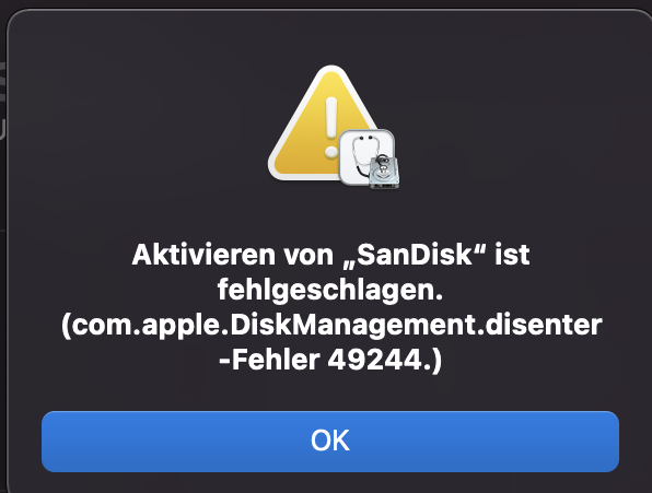 Hallo liebe Community, ich habe leider ein Problem mit meiner externen Festplatte bekommen welches ein Jahr (ohne Probleme) genutzt werden konnte. Ich kann es leider nicht mehr aktivieren und mir wird folgendes hierbei angezeigt: