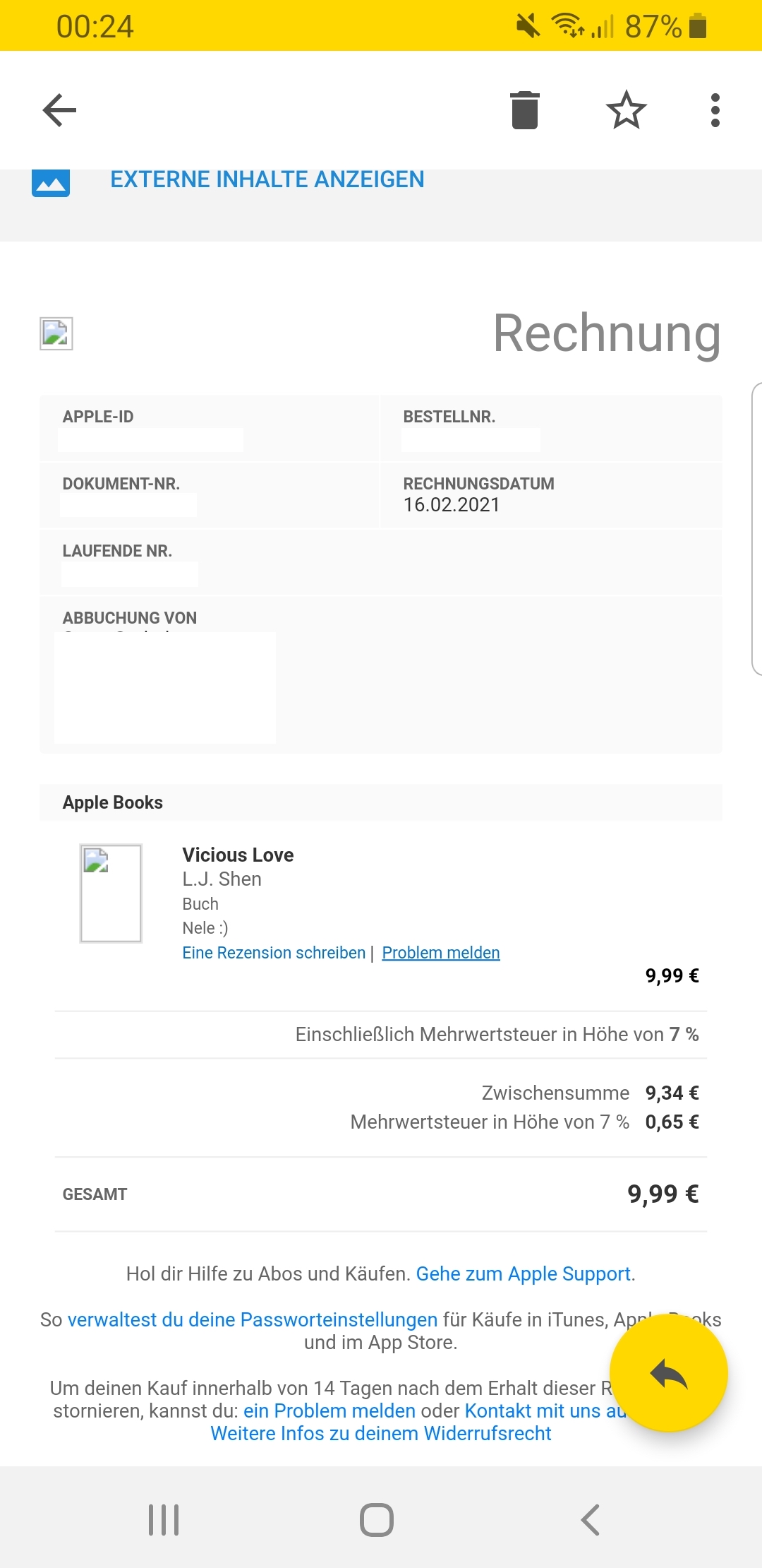 Dabei sind die Kaufbestätigung und das Foto vom Buch (dass ich dann nochmals kaufen müsste).