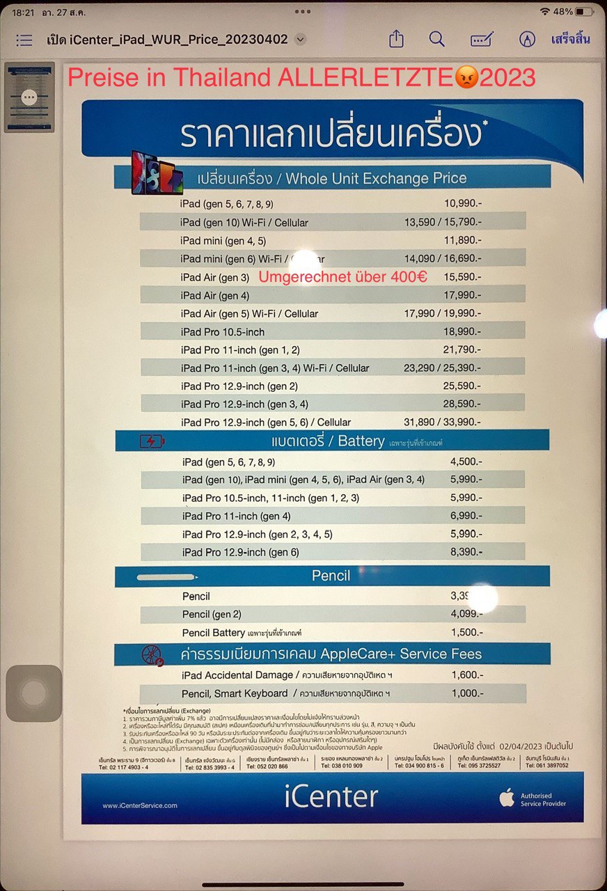 Ersatz erhalten für 3000.00 THB ZUSATZGEBÜHREN TROTZ APPLECARE+ 2500.00 THB