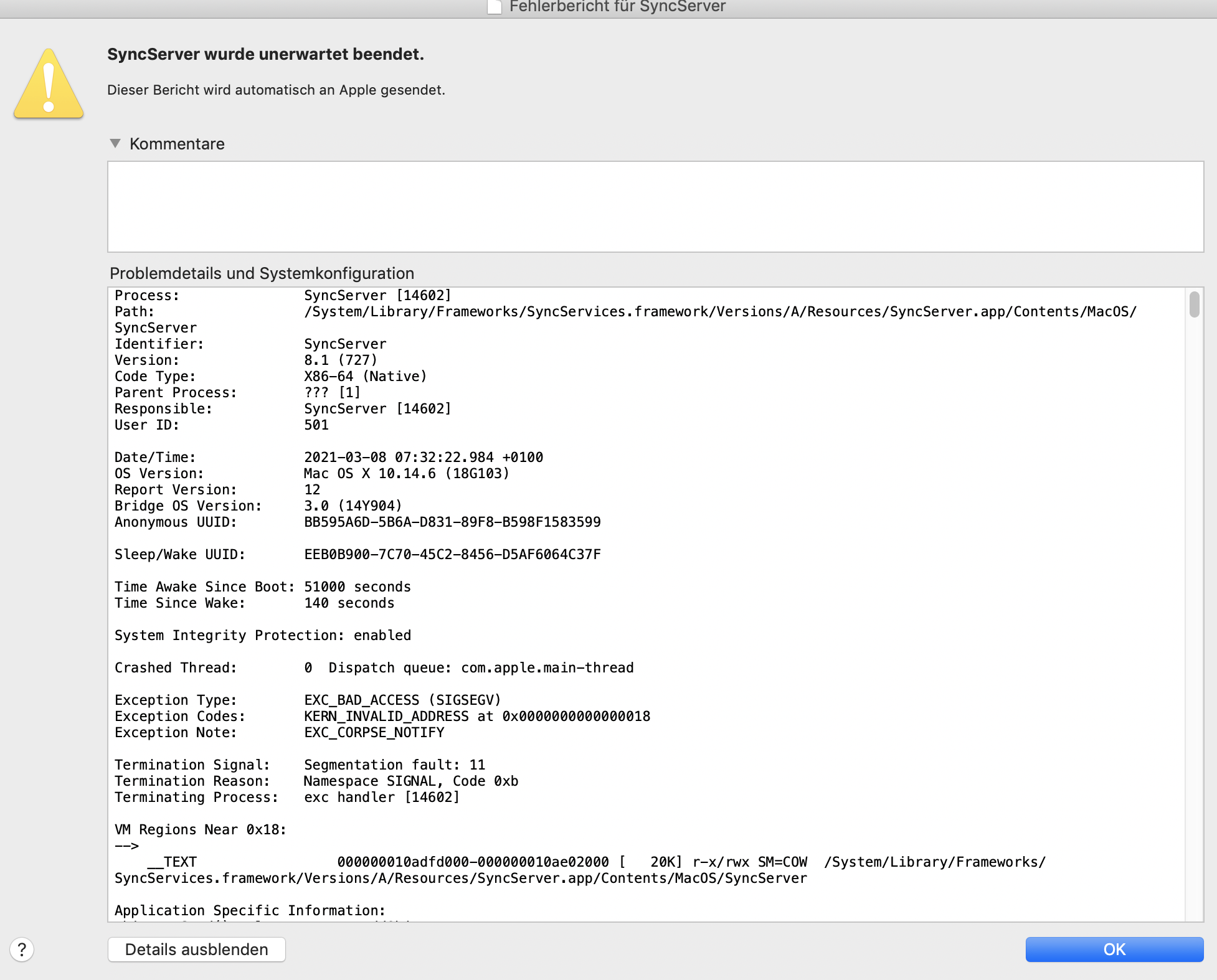 Das ist wohl ein Dienst, mit dem macOS verschiedene unter einem AppleID-Account angemeldete Dienste (iMessage etc.) synchronisiert. Es gibt dazu auch eine *.plist: /Users/DeinUser/Library/Preferences/com.apple.syncserver.plist