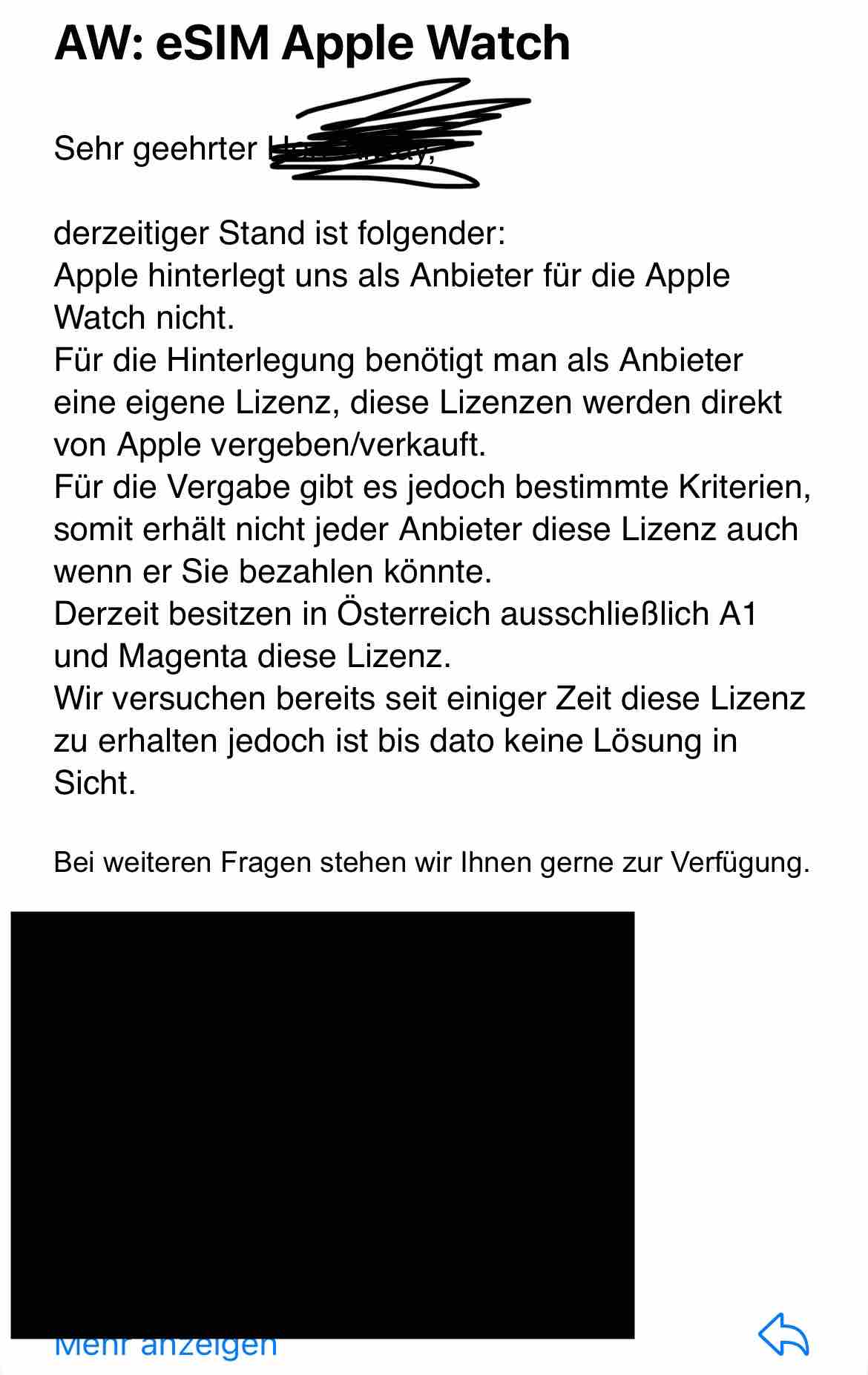 Apple Watch unterstützt nicht konkreten eSIM Anbieter