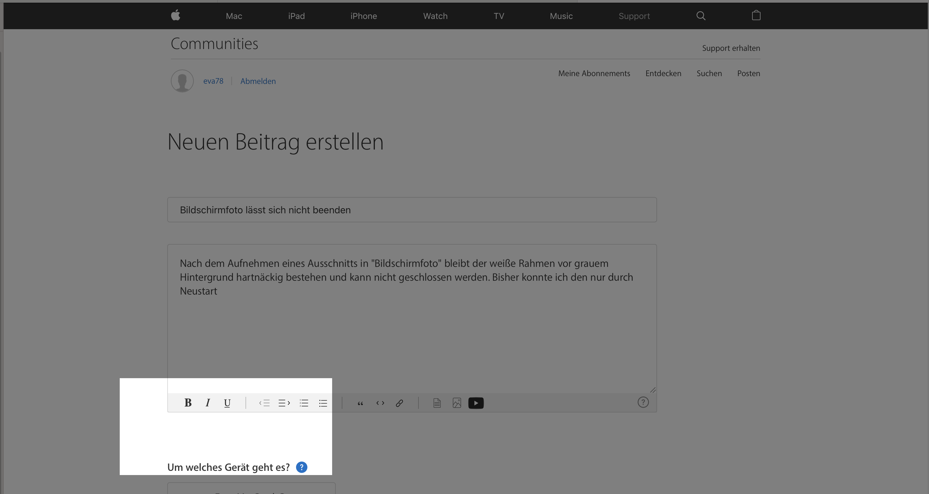 Ein Forum, in dem Apple-Kunden sich gegenseitig mit ihren Produkten helfen. Melde dich mit deinem Apple Account an, um Mitglied zu werden.