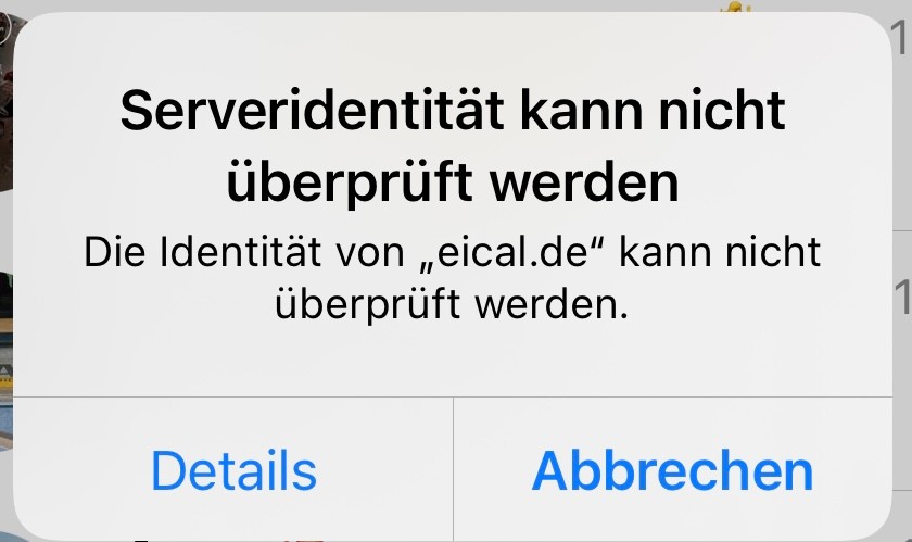 ich erhalte immer wieder diese Meldung. Und ich habe keine Ahnung was das zu bedeuten hat. Es wird als "nicht vertrauenswürdig" eingestuft. Eical.de gibt's auch gar nicht, wenn man danach sucht.