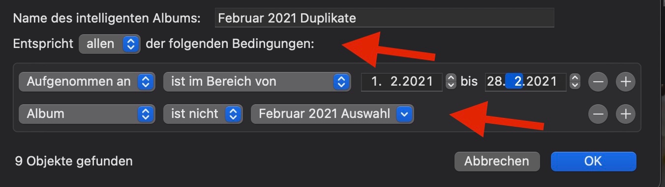 • Jetzt lege ein intelligentes Album ein, indem du nach allen Fotos suchst, die im Februar aufgenommen wurden, aber nicht in der kuratierten Auswahl sind: