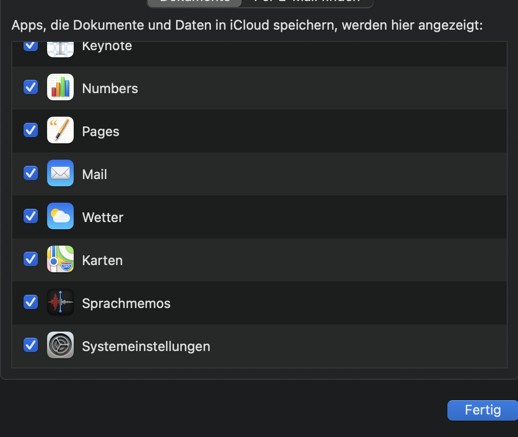 Auf meinem MacMini: Im Finder sehe ich "iCloud Drive" und darin alle meine Dateien und Ordner. Bis vor einer Woche auch Numbers und Pages, aber die beiden fehlen jetzt.