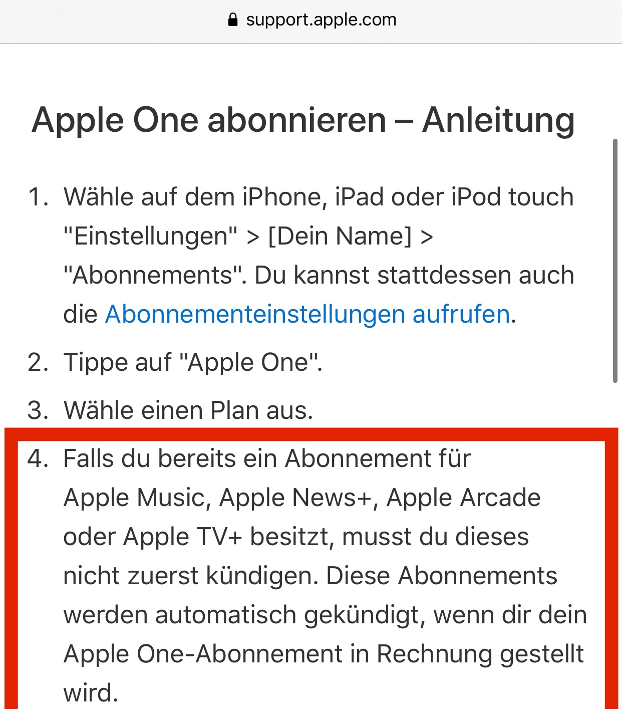 Apple One Familie - wird es mit dem bestehenden Musik Familienabo verrechnet?