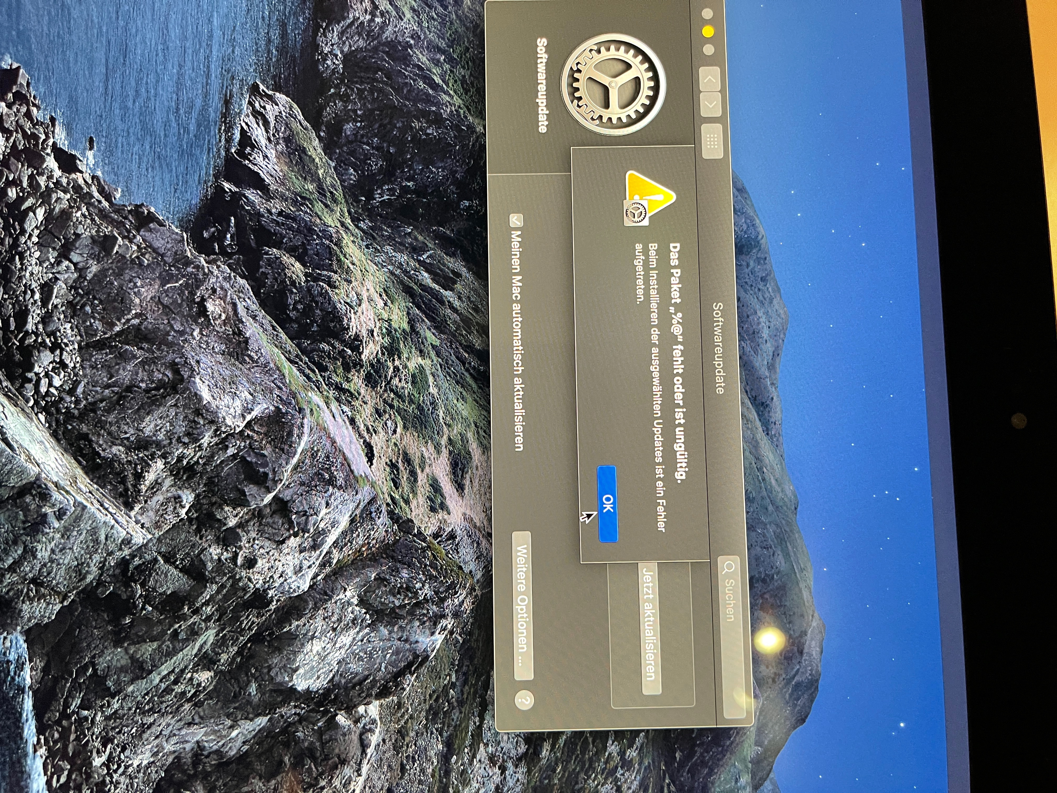 die Bildschirmanzeige zeigt dir doch den Fehler an, d. h. das Installationspaket ist fehlerhaft / ungültig - warum auch immer. Suche nach anderen Möglichkeiten (abgesicherter Modus, CLI, etc.), das gewünschte Update einzuspielen.