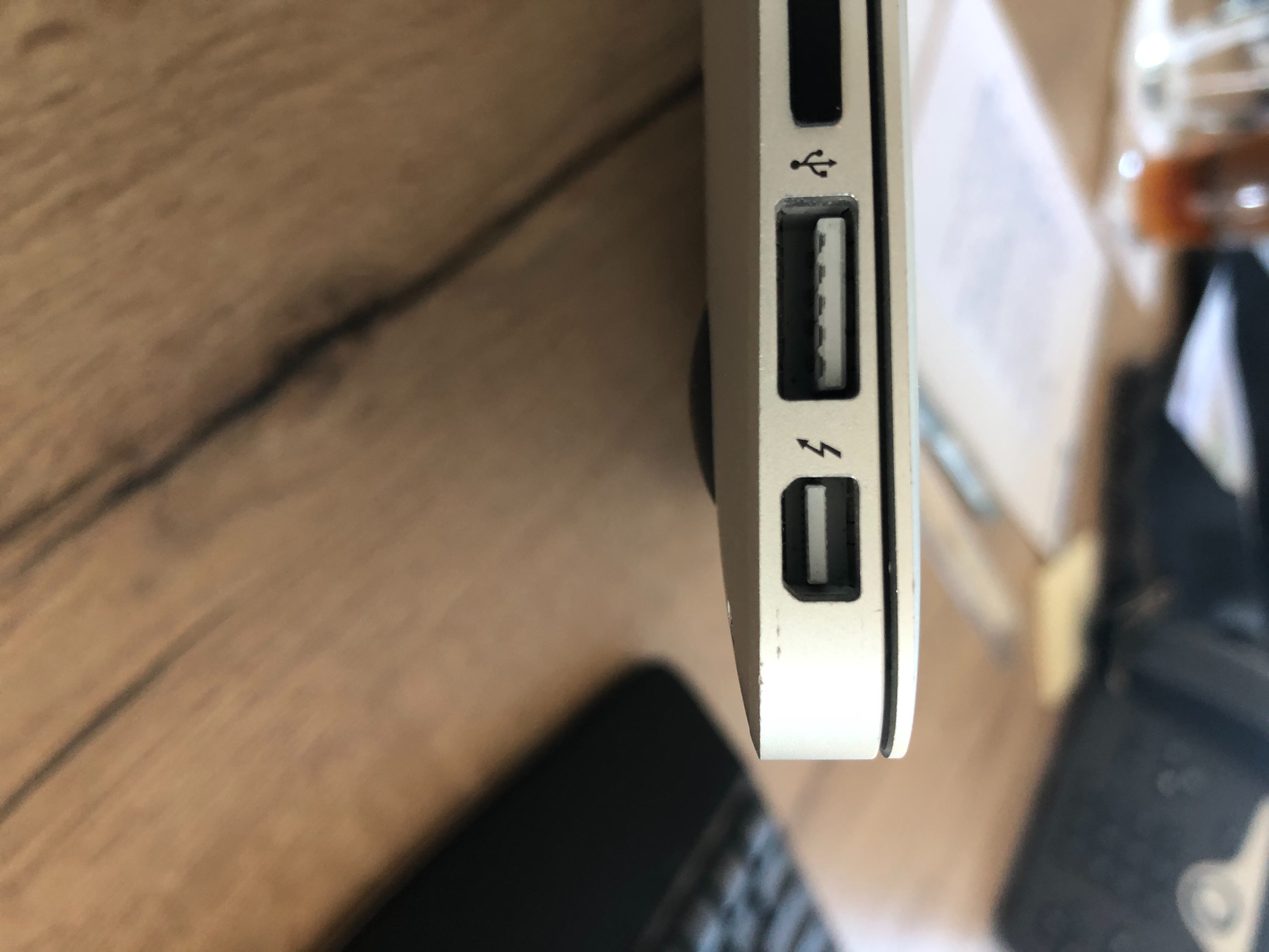 Ich habe ein Apple Display bisher an mein MacBookAir(Mitte 2013) angeschlossen. Rechte Seite ganz oben, ist wohl ein Thunderbolt (aber welcher) und gleichzeitig am USB für Bild und Ton am Display.